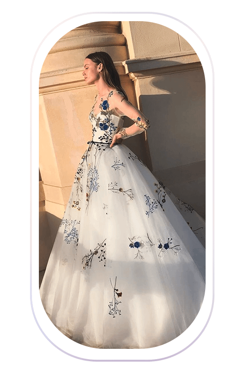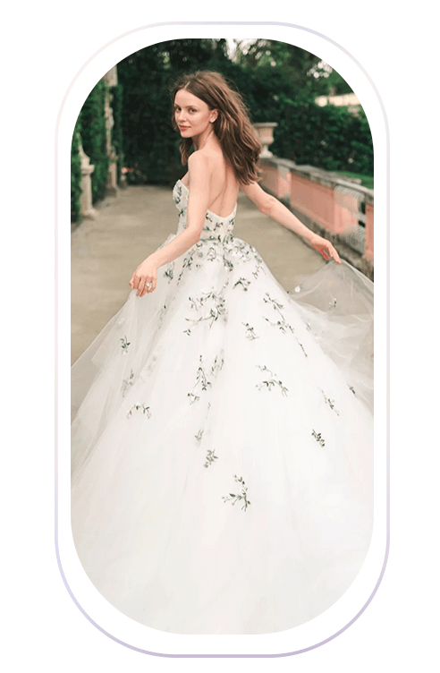 Яркая или белая вышивка, патчи или наклейки: в этом сезоне свадебные платья с цветочным принтом особенно актуальны. Дополнительную трехмерность дизайнеры создают с помощью объемных цветов по всей длине нарядов. Такой акцент подходит как для облегающих, так и для пышных свадебных платьев.