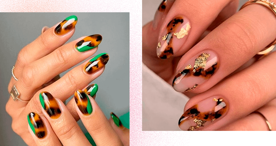 Черепаховый узор является трендом 2023 года, но осенью он особенно актуален. Выбирай для него коричневые, оранжевые, зеленые оттенки, а также дополняй их яркими вставками. Можешь разнообразить маникюр золотистыми полосами или фольгой, но эффектно он смотрится и без всякого декора.