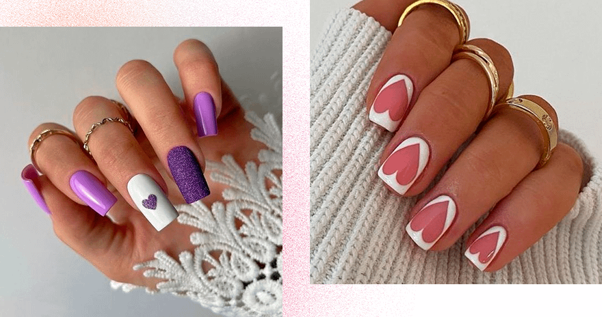Сердца — один из трендов рисунков на ногтях осени 2023. Они могут выступать в качестве паттерна, покрывающего все ногти, или акцента, привлекающего внимание. Также можешь использовать слайдеры для декора и стразы такой формы. Не стоит останавливаться на классических красном и розовом оттенках сердец — свежо и стильно будут смотреться яркие, насыщенные цвета.