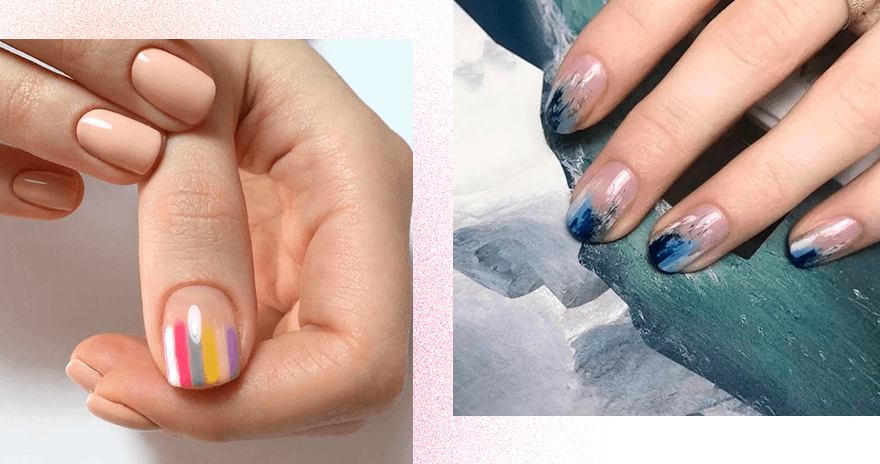 Маникюр с эффектом мазков кисти красочный, но в то же время элегантный и стильный. Такой дизайн подойдет как для покрытия всех ногтей, так и в качестве акцента на одном или нескольких из них. Не стоит дополнять его украшениями или стразами — сам по себе он смотрится эффектно и броско.
