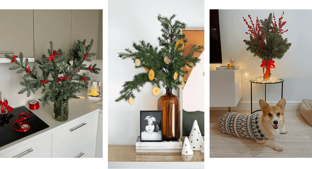 Идеальный вариант, если хочешь, чтобы в доме пахло живой елью, но не готова тратить несколько тысяч на покупку дерева, которое после праздников придется выбросить. Поставь в стильную вазу несколько еловых веток и укрась композицию сушеными дольками апельсинов, гирляндой или мини-игрушками. Зимний букет будет радовать тебя не одну неделю.