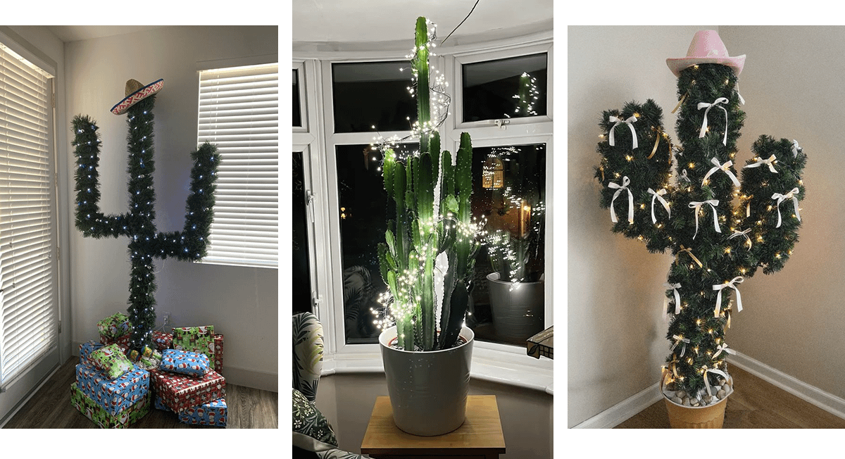 Возможно, ты выращиваешь цветы, среди которых есть высокий кактус. Укрась его гирляндой и легкими игрушками. Получится довольно стильная и необычная альтернатива елки. Если настоящего кактуса у тебя нет, купи бумажный или из другого подходящего материала.