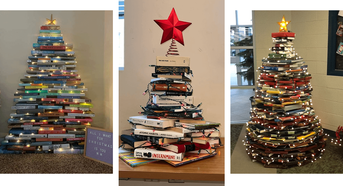 Если в твоей квартире много книг, используй их, чтобы создать своими руками стильную композицию. Расположи книги на столе в форме ели. Возьми издания разных размеров с цветными корешками. Укрась книжную елку гирляндой и мелкими игрушками.