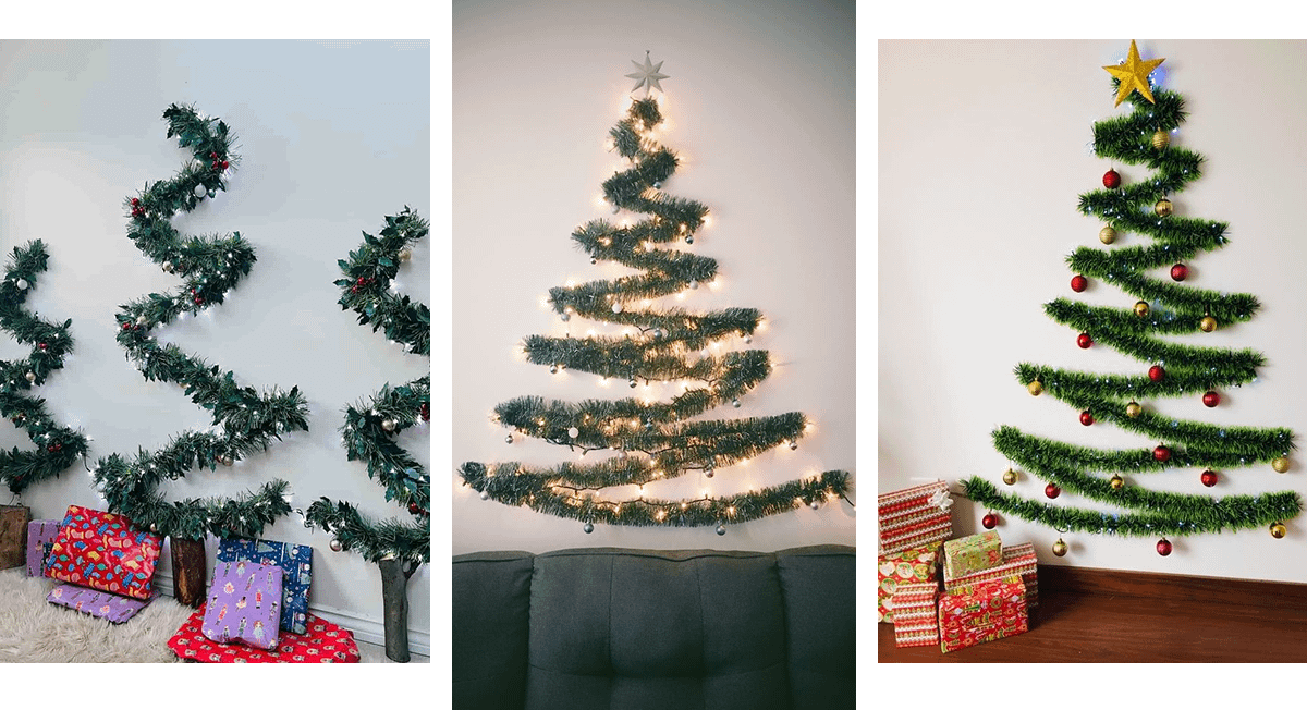 Это новогоднее украшение в последние годы не очень актуально, но полностью отказываться от него не обязательно. Можешь использовать мишуру, чтобы сделать елку. Используя канцелярские кнопки, закрепи мишуру на стене так, чтобы получилось подобие елки. Маленькое полено или веточку повесь у основания стены или поставь на пол, чтобы «ель» выглядела более стильно и реалистично.