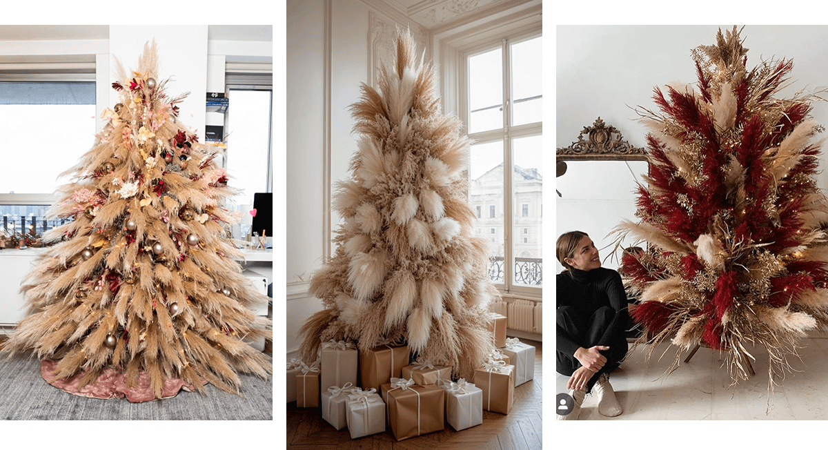 Воплотить эту идею в жизнь будет довольно непросто, но если ты творческая личность, то справишься за пару часов. Купи как можно больше сухоцветов и используй основание от старой пластиковой елки, которую больше не хочешь украшать. С помощью лески или прозрачного клея закрепи сухоцветы на дереве так, чтобы получилась пышная композиция. Дополнительно можешь украсить ее бусами или гирляндами с желтым светом.