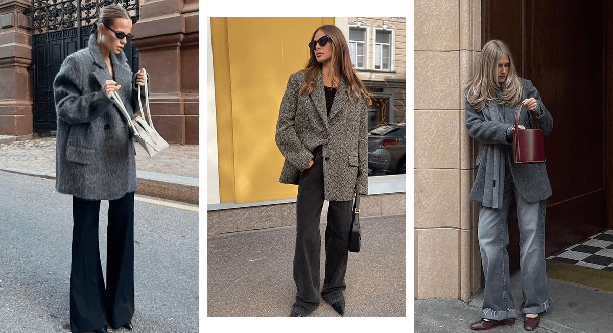 Речь в этом случае идет не об оверсайз-жакете, который выглядит так, будто был снят с великана, а об изделии, которое не прилегает к телу, но хорошо сидит в плечах. Оптимальный выбор для холодной осени — жакет из шерсти с плотной подкладкой. Длина изделия должна доходить до середины бедра или быть на пару сантиметров выше.