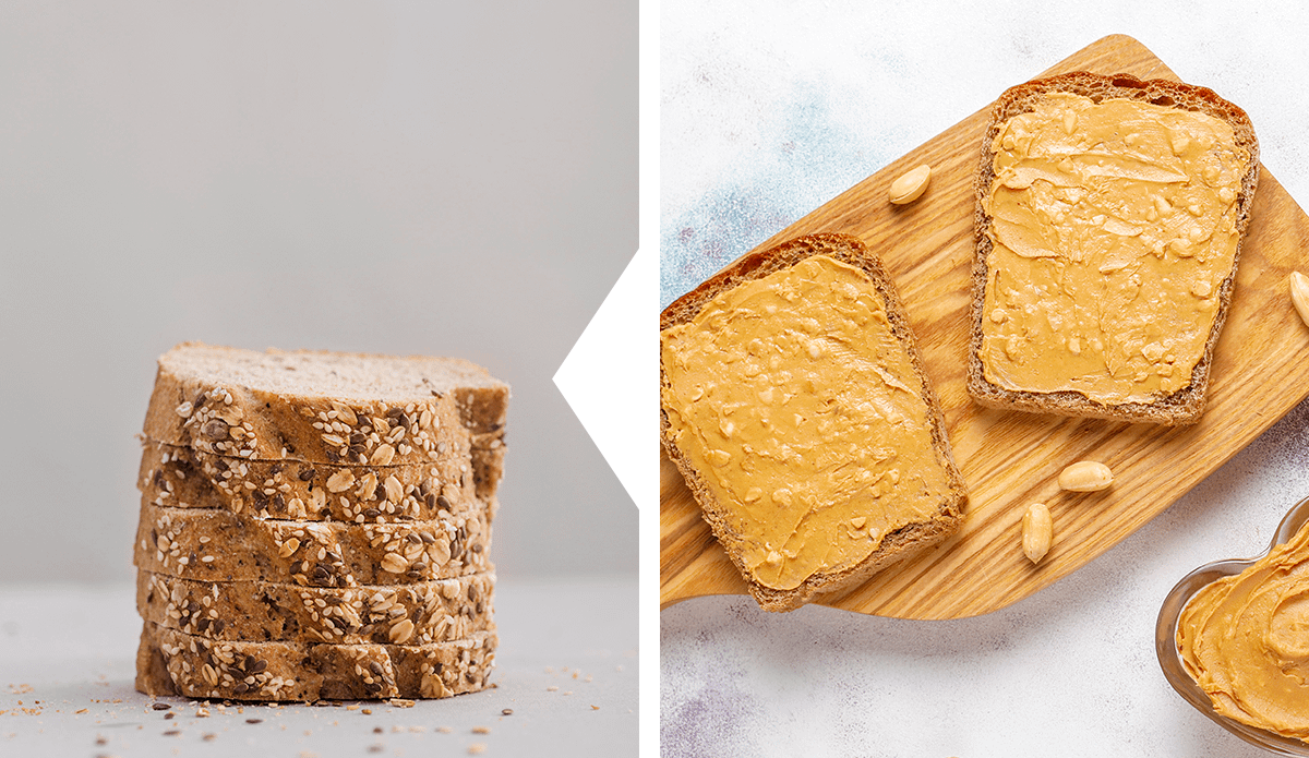 Если хочешь сделать полезный бутерброд, намажь цельнозерновой хлеб арахисовым маслом.