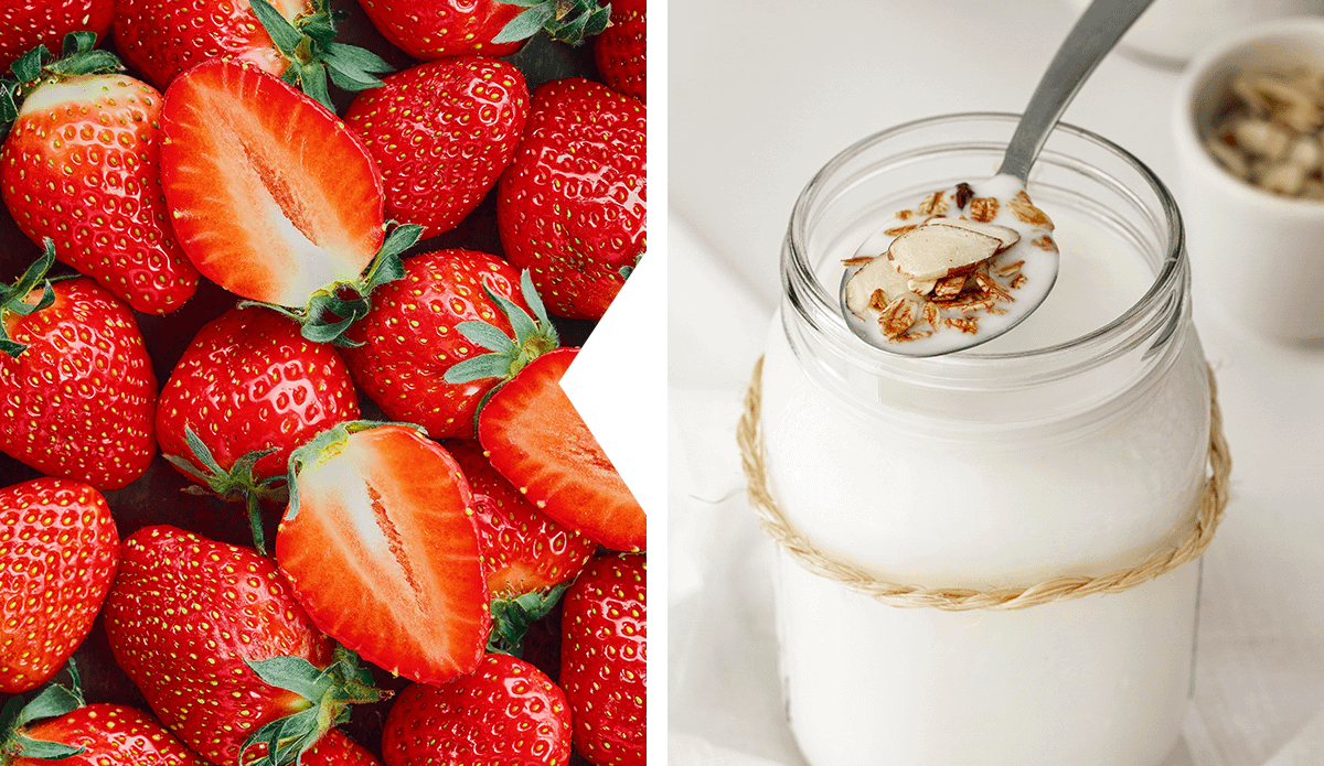 В злаках содержится железо, которое хорошо усваивается вместе с витамином С из клубники. А жиры, которыми богат йогурт, необходимы, чтобы организм хорошо усваивал фолиевую кислоту из сладкой ягоды.
