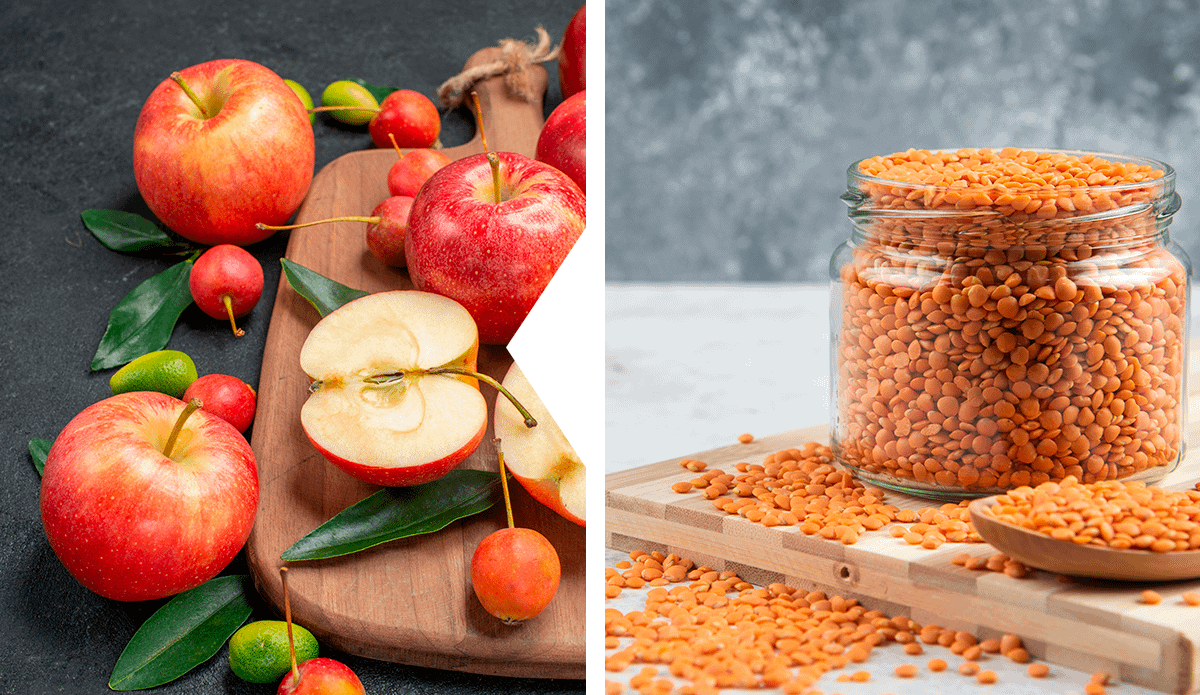 Этот вид бобовых содержит много негемового железа, которое плохо усваивается организмом. Но благодаря витамину С из яблок, оно станет гемовым и усвоится гораздо лучше.