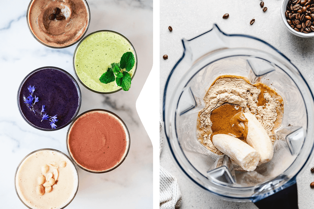 Используй протеиновый порошок, греческий или соевый йогурт, ореховое масло, семена чиа и тыквы, молоко, чтобы напиток получился сытным и полезным.