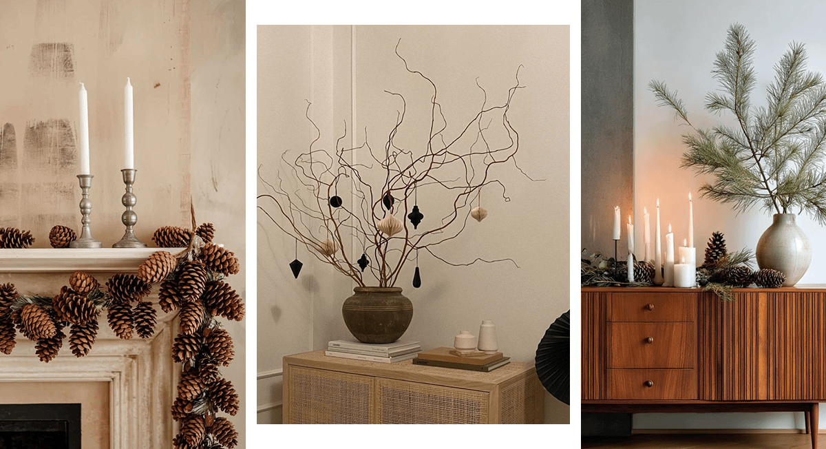 Собери ветки, шишки, засушенные листья или цветы прямо во дворе или на прогулке и размести их в вазах, тарелках или на полках. Природные элементы создают ощущение гармонии и легкости, делают пространство уютным и освежают его. Кстати, если в доме есть дети, можешь привлечь их к созданию декора — они точно не останутся равнодушны.