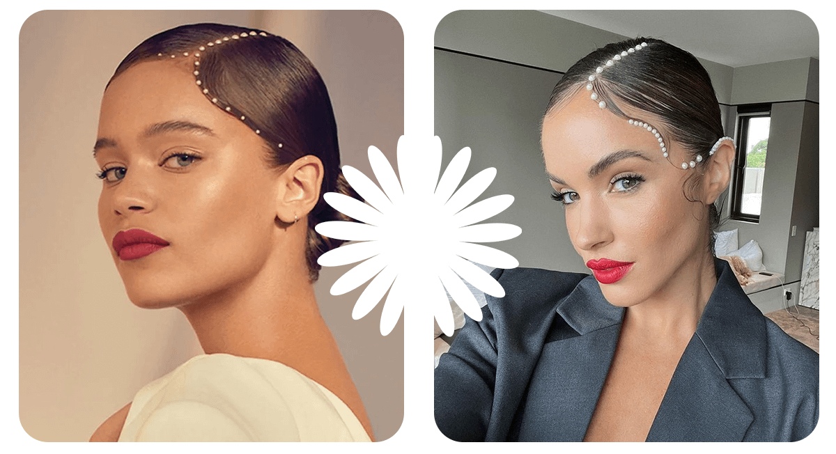 Если ты предпочитаешь создавать классические образы, эта прическа точно понравится тебе. Чистые волосы аккуратно собери в низкий или средний пучок. Дополнительно зафиксируй волосы лаком средней фиксации или гелем. Затем по линии пробора закрепи специальным клеем жемчужины одного или разных размеров.