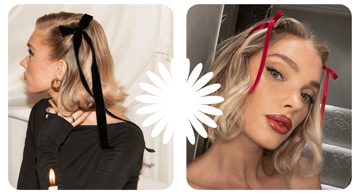 Шелковые ленты можно использовать не только для украшения елки и дома. Они идеально дополнят любую аккуратную прическу с косами или легкими волнами. Можешь использовать только один шелковый бант из ленточки либо несколько: ориентируйся на длину волос и собственные предпочтения. Самые актуальные — красные и черные ленточки.