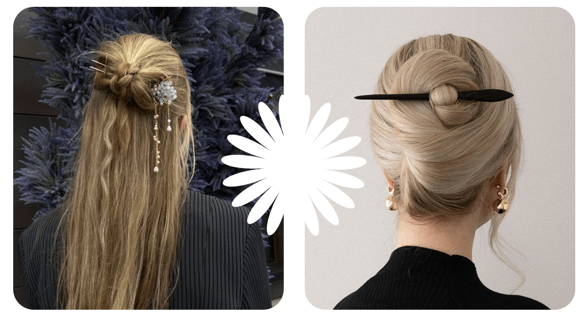 Мода на азиатскую культуру распространилась повсеместно. Поэтому неудивительно, что стилисты по волосам советуют всем девушкам научиться делать прически с кандзаси — японскими традиционными украшениями для волос. Они идеально подходят для создания аккуратного женственного пучка и полухвоста. Используй аксессуар, дополненный цветами, бусами или другим ярким акцентом, чтобы образ получился более интересным.