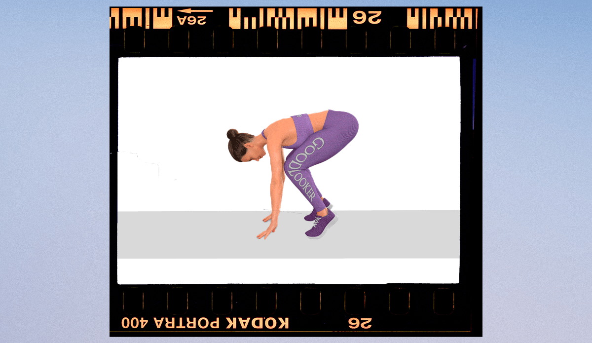 - Встань, слегка согнувшись в коленях, как будто собираешься приседать;
