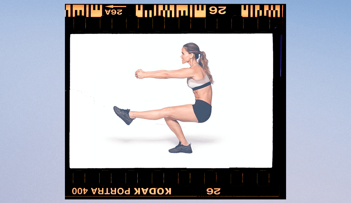 - Выполни 10–12 приседаний на одной ноге, затем — на другой.