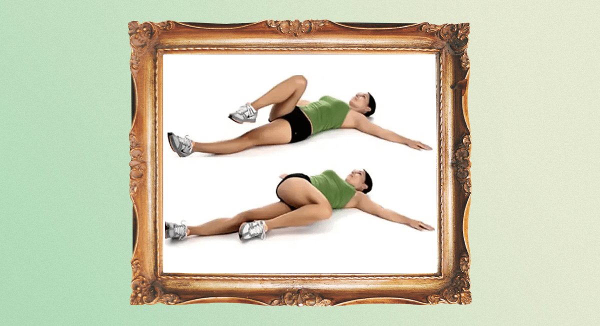 Сделай по десять раз на каждую сторону. Если колену неудобно, подложи под него коврик или сложенное полотенце — так будет комфортнее.