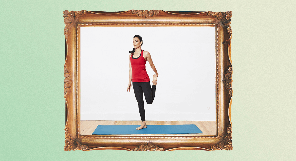 Затем аккуратно наклонись вперед, выводя согнутую ногу назад, а корпус опуская параллельно полу. Вернись в исходное положение и повтори, сделай по десять раз на каждую ногу. Чтобы было легче держать равновесие, можешь опираться рукой на стену или стул.