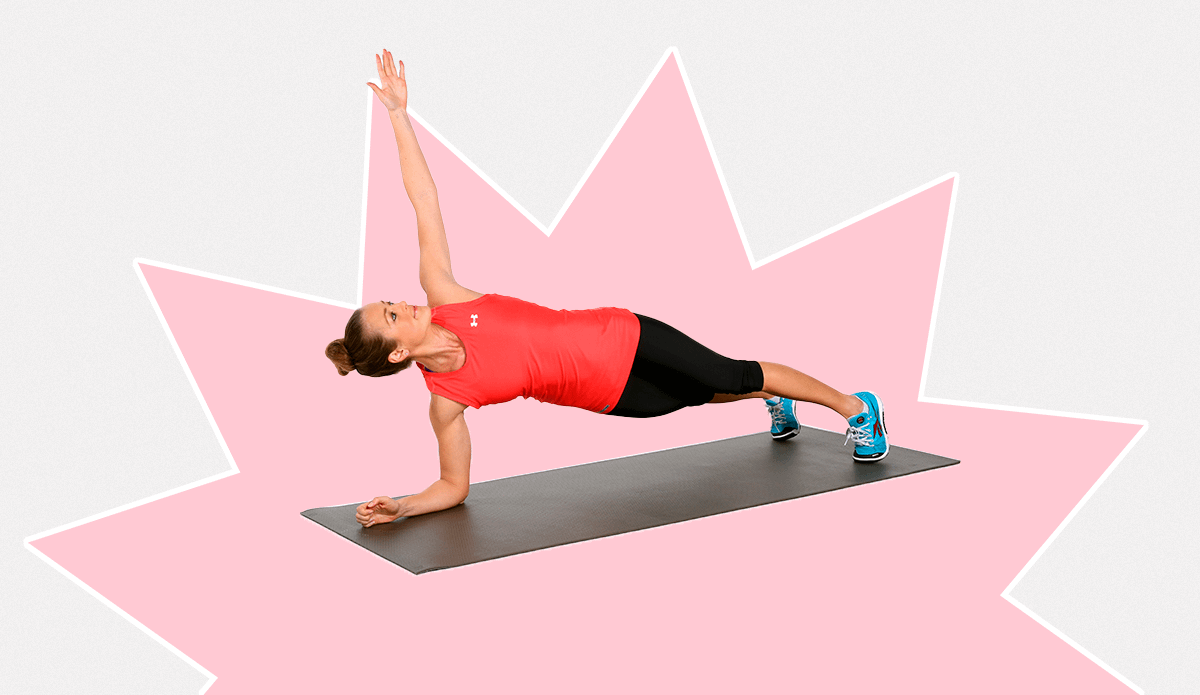 Это упражнение позволяет задействовать боковые мышцы тела. Практикуй его, когда почувствуешь, что готова усложнить тренировку.