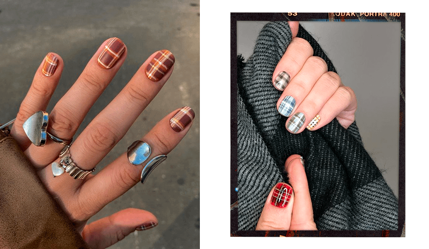 Нарисовать клетку вручную вряд ли получится. Обычно нейл-мастера используют наклейки или другие хитрости. Чтобы маникюр в клеточку получился стильным, нужно подобрать оттенки, которые хорошо сочетаются между собой.