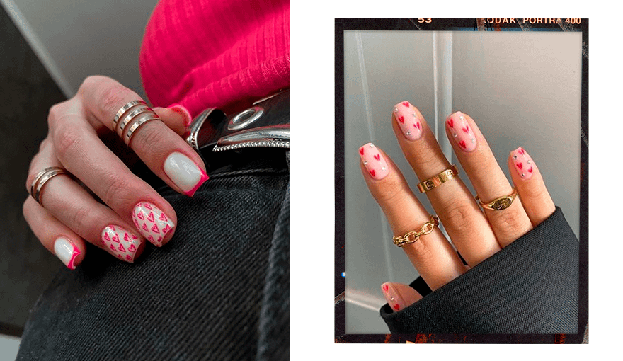 Если думала о том, чтобы отказаться от длинных ногтей, попроси мастера сделать углы коротких ногтей немного острыми. Такая форма идеально сочетается с дизайном с сердечками.
