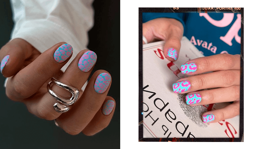Если не боишься экспериментов, сделай маникюр с животным принтом с замененными цветами. Например, с фиолетово-желтой зеброй или зелено-серым тигровым принтом. Покрытие может быть как глянцевым, так и матовым.