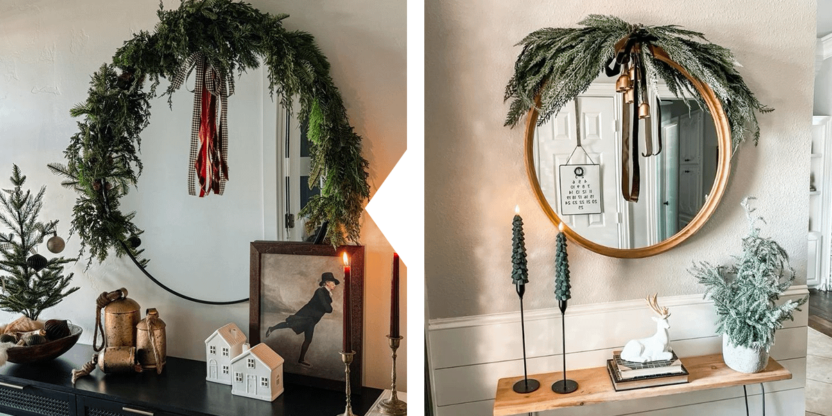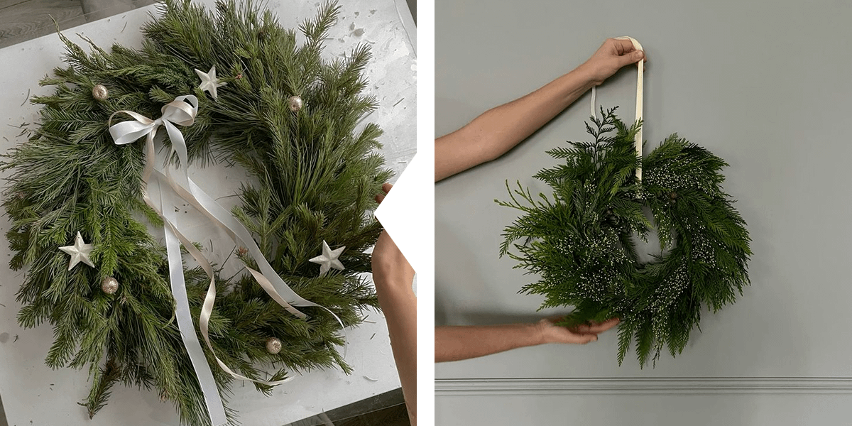 Если твоя спальня также выполняет функцию гардеробной, используй это, чтобы создать в комнате новогоднее настроение. Купи готовые рождественские венки или сделай их сама из настоящих еловых веток. Укрась по своему вкусу лентами или игрушками. Добавь к венку держатель и закрепи его на дверце шкафа.