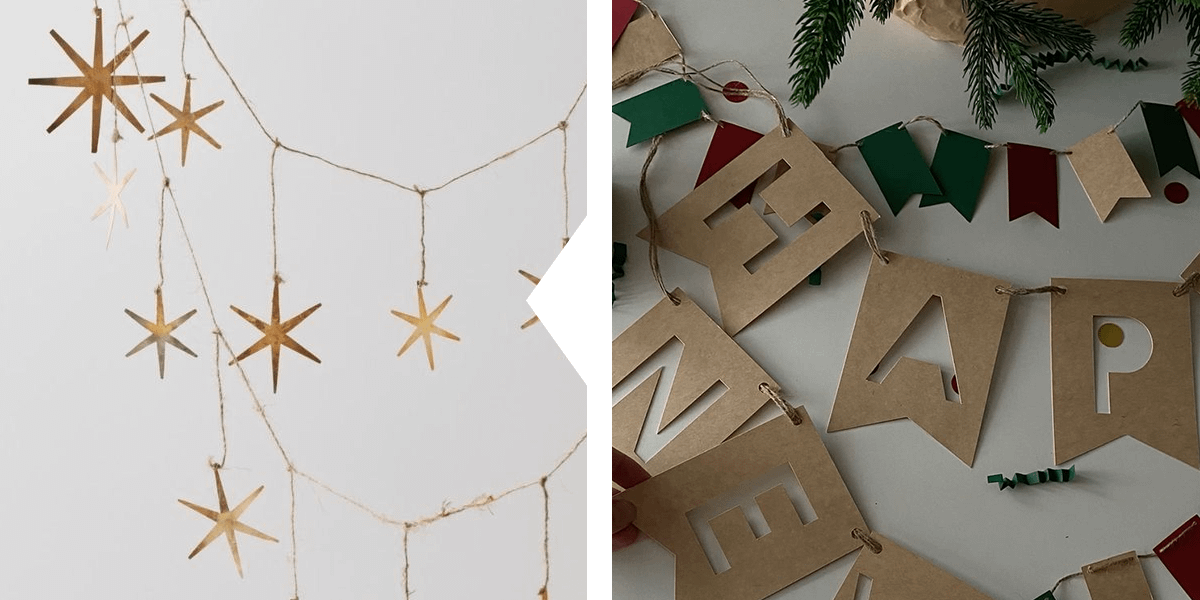 Если в спальне есть пустая белая стена или над изголовьем кровати ничего не висит, укрась пространство бумажной гирляндой. Купи готовое украшение на маркетплейсе или сделай его сама. Вырежи из цветной или белой бумаги необходимую форму, сделай дыроколом дырочки для ленты и собери композицию. Чтобы закрепить ее на стене, используй прозрачный двусторонний скотч.