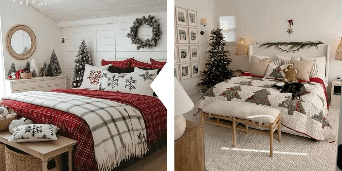 Замени обычное одеяло более праздничным красным и подбери новогодние чехлы для декоративных подушек. Однотонное постельное белье советуем заменить моделью в клетку. Идеально подойдут комплекты в красно-зелено-белом цвете.