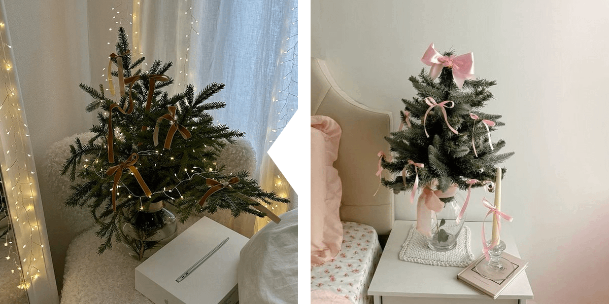 Чтобы сделать стильную композицию, тебе понадобится парочка живых еловых веток, разноцветные ленты, гирлянда на батарейках и устойчивая ваза. Собери букет на свой вкус и поставь его на тумбочку у кровати или на туалетный столик. Спальня не только преобразится, но и наполнится приятным ароматом.