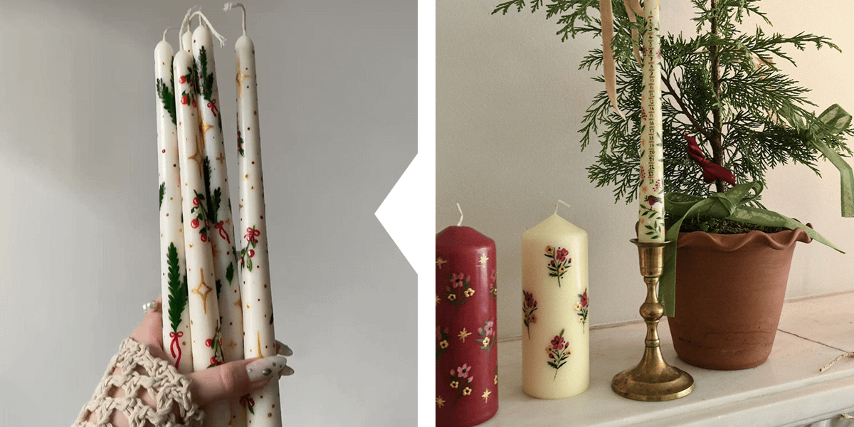 Давно мечтала завести новое хобби? Попробуй самостоятельно изготовить ароматические свечи. Когда закончишь с основным этапом, вооружись гуашью и нарисуй на свечах новогодний декор, например леденцы, ветку омелы, елочку или снежинки.