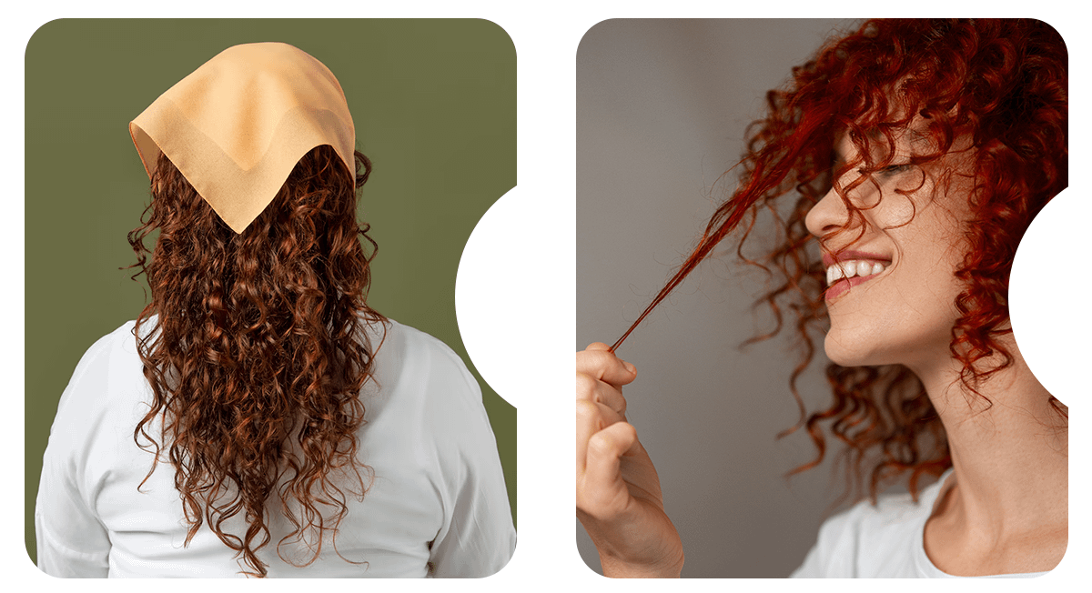 Кудрявым девушкам приходится заботиться о волосах не только днем, но и ночью. Прежде чем лечь спать, нужно аккуратно прочесать локоны пальцами, чтобы они не спутались, а затем собрать их в свободный пучок или косу. Что касается наволочки, лучше использовать шелковую, так как она уменьшает статическое электричество и спасает волосы от повреждений. На ночь также можно сбрызнуть волосы водой и надеть специальную шапочку, чтобы лучше сохранить завитки.
