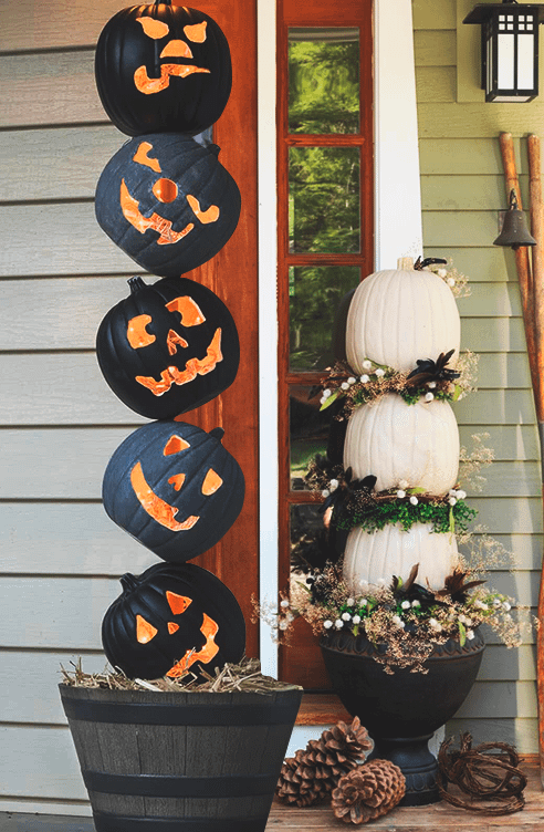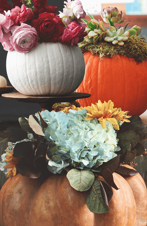 Отрежь у тыкв верхушки и удали всю мякоть, а затем поставь в них цветы. Дополнительный декор в виде лент, бусин или хеллоуиновских принтов добавит им шарма, а также поможет вписаться в любой праздничный интерьер.