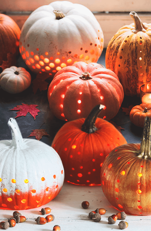 Если у тебя дома есть дрель, то она пригодится не только для ремонта. Для создания необычного тыквенного фонарика, похожего на знаменитый светильник «ночное небо», потребуются разного размера сверла и достаточно упорства, чтобы сделать множество дырочек в «боках» тыквы. Предварительно ее нужно очистить от сердцевины. Внутрь положи гирлянду с желтым свечением, а для яркой вечеринки – с разноцветными лампами.