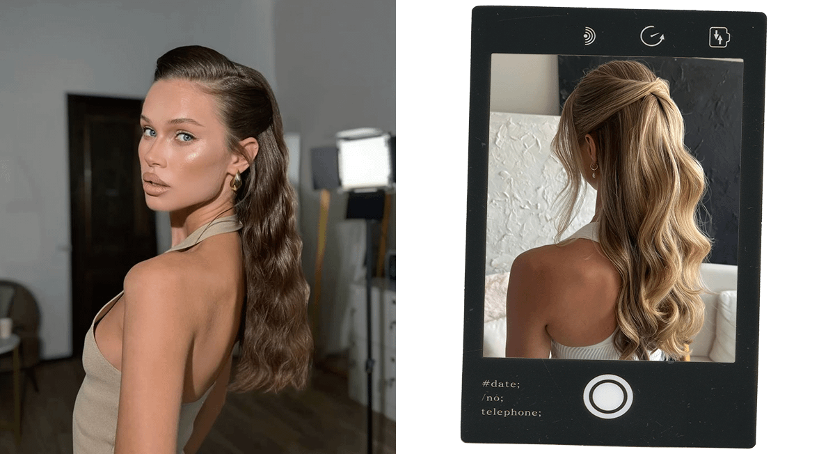 Собери верхнюю часть волос (от висков до макушки) в высокий хвост. На последнем обороте резинки не вытягивай волосы полностью — оставь петлю. Аккуратно распуши ее пальцами, чтобы создать объем. Оставшийся кончик оберни вокруг основания хвоста и закрепи шпилькой. Для большей небрежности слегка вытяни несколько тонких прядей у лица и на затылке. Если хочешь сделать укладку наряднее, добавь декоративную заколку или оберни основание хвоста прядью волос.
