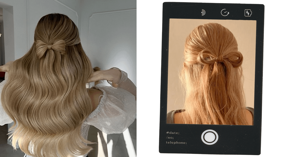 Собери часть волос в высокий хвост. На последнем обороте резинки не вытягивай хвост до конца — должна получиться объемная петля. Раздели ее пополам пальцами и сформируй «крылья» банта. Расправь «крылья» и придай им аккуратную форму. Для объема слегка начеши пряди внутри банта. Если волосы выскальзывают, предварительно обработай их текстурным спреем.