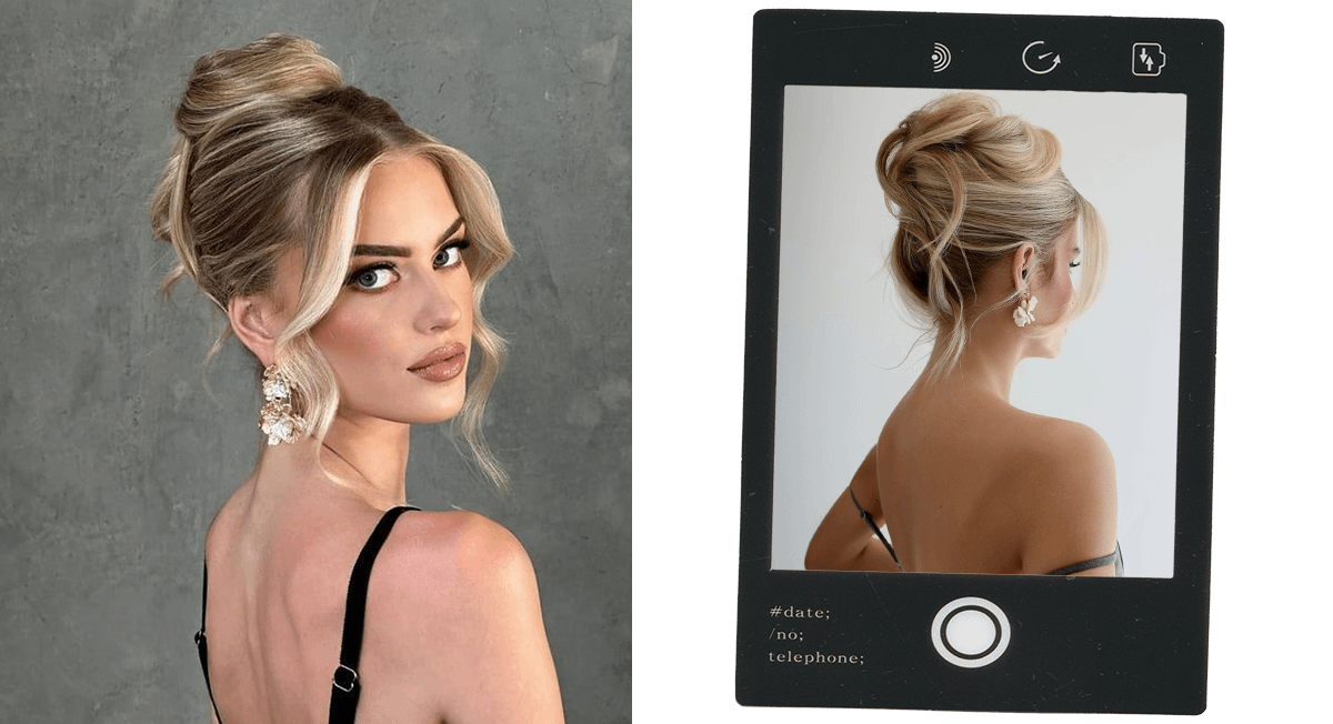 Собери волосы в высокий хвост, но не затягивай последний виток резинки. Оставшийся свободным кончик хвоста оберни вокруг основания, чтобы спрятать резинку. Затем аккуратно начеши пряди внутри петли, чтобы создать объем. Закрепи шпильками и слегка распуши прическу, чтобы она выглядела естественно. Для завершения образа добавь ободок или ленту.