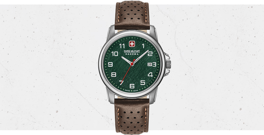 4. Швейцарские SWISS MILITARY HANOWA 06-4231.7.04.006 в военном стиле с люминесцентным покрытием.
