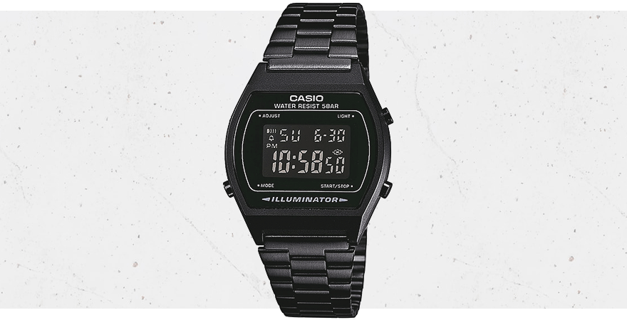 11. CASIO B640WB-1B с прямоугольным корпусом из пластика и стали с водозащитой 5 АТМ.