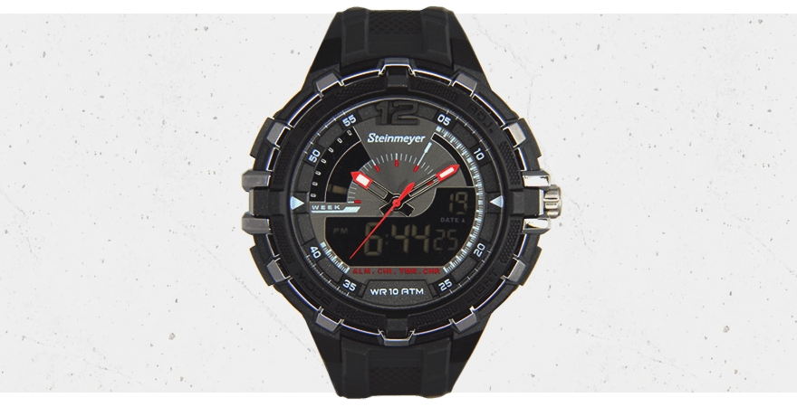 9. Немецкий хронограф STEINMEYER S 172.11.31 с сочетанием кварцевого и электронного механизмов в изящном черном корпусе.