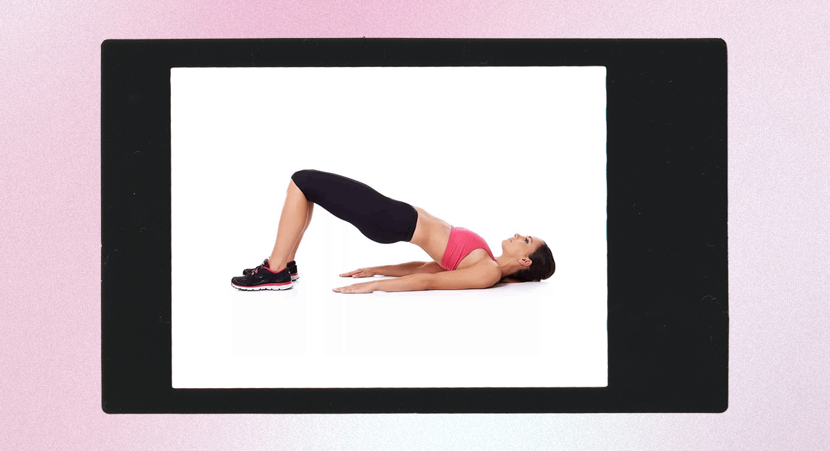 - медленно и аккуратно подними таз вверх, сжимая ягодицы;