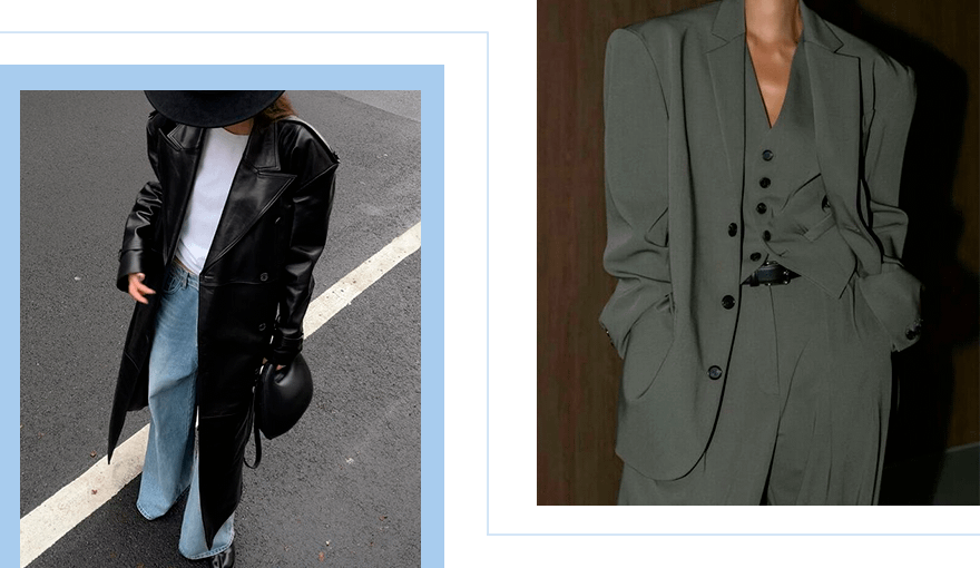 Если тебе близка эстетика 90-х, но ты любишь классическую одежду, обзаведись кожаным тренчем или жакетом. Носи его с базовой белой рубашкой, короткой юбкой и высокими сапогами. Заверши образ черным галстуком и очками с массивной оправой, если любишь экспериментировать с аксессуарами.