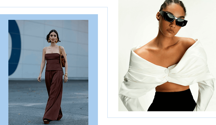 Носи блузки и платья с открытыми плечами, чтобы создать женственный образ. Выбирай однотонную одежду в классическом стиле. Так аутфит будет выглядеть дорого. Особое внимание обрати на вещи с прямой линией открытого декольте.