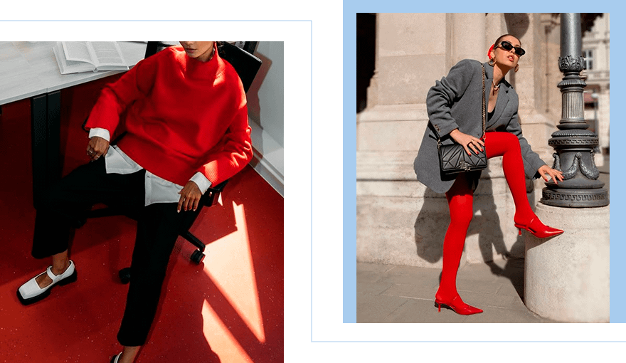 Если глубокий бордовый оттенок кажется тебе скучным, присмотрись к ярко-красной одежде. Это может быть базовый свитер, блузка или укороченный пиджак. Выбери вещь, которая лучше всего впишется в повседневный гардероб.