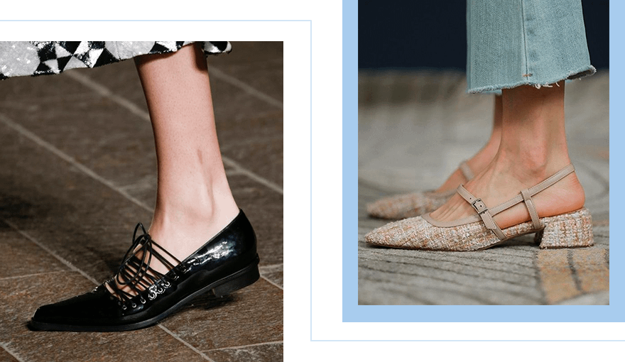 Туфли и балетки с акцентным острым мысом тоже были актуальны в 90-е годы прошлого века. Но так как мода циклична, они вновь оказались в числе модных трендов. Это неудивительно и потому, что с их помощью можно визуально удлинить ноги и сделать более женственным самый простой образ.
