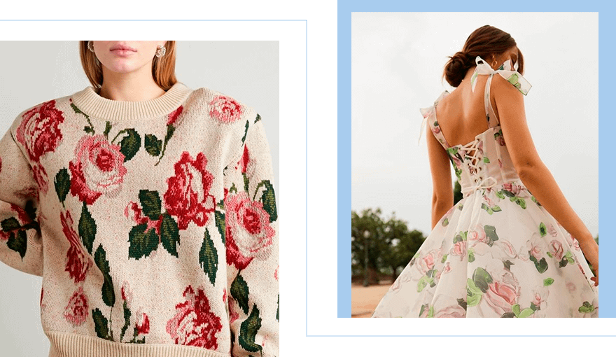 Прежде чем купить вещь, обрати внимание на ее качество. Принт должен быть хорошо пропечатан и выглядеть уместно. Учитывай, что свитер или платье, украшенное большими розами, может слегка полнить. Поэтому такую одежду лучше сочетать с минималистичными вещами, облегающими фигуру.