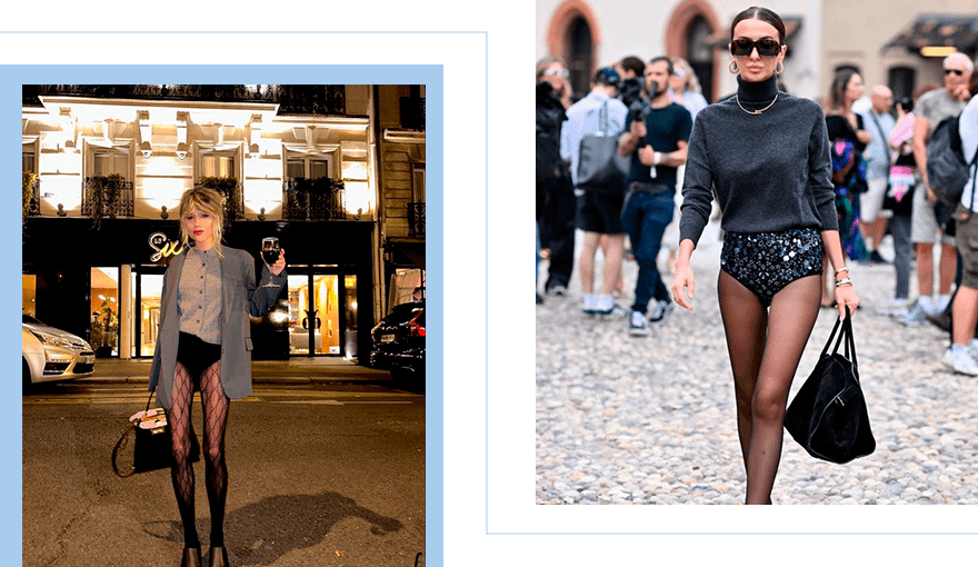 Как правило, мини-шорты с высокой линией талии сочетают с черными колготками. Такой дуэт визуально удлиняет ноги и придает образу сексуальности. Используй базовый свитер, рубашку или жакет, чтобы аутфит выглядел не сильно вызывающе. Заверши его обувью на плоской подошве или туфлями-лодочками.