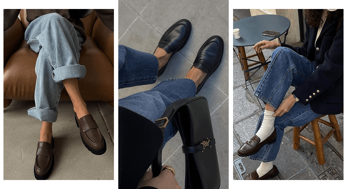 Носить стильные кожаные лоферы стилисты рекомендуют с высокими носками либо вовсе без них. Цвет изделия может быть любым, но наиболее универсальны темно-коричневые и черные лоферы.