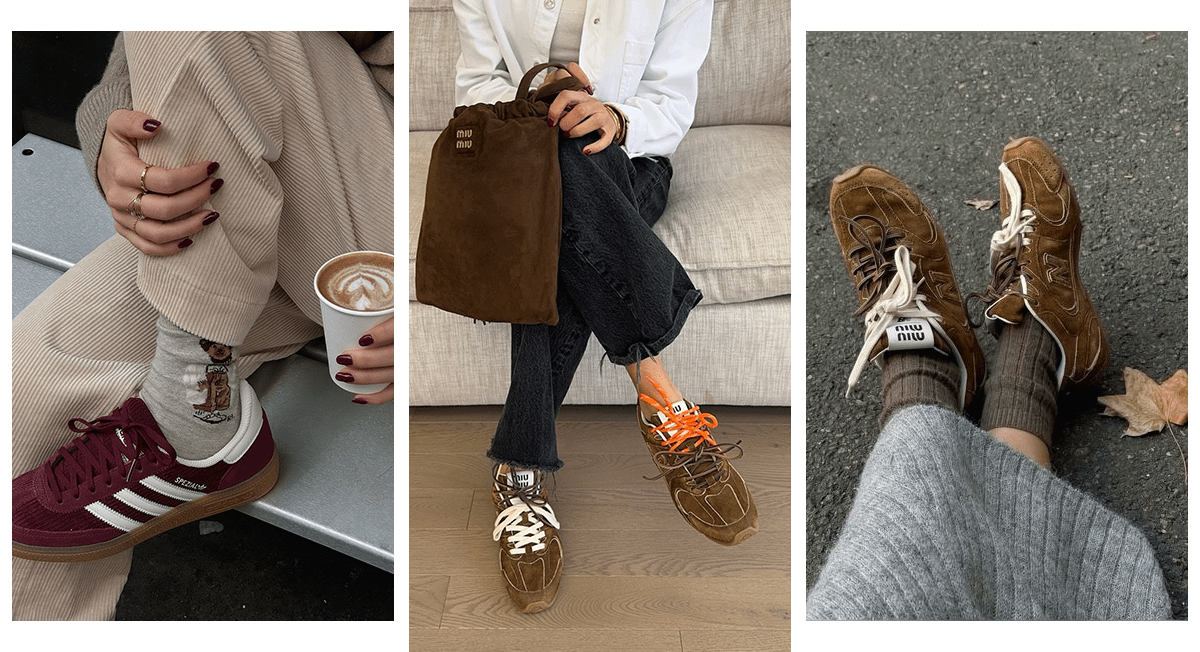 Один из главных обувных трендов последних лет — бархатные кроссовки в винтажном стиле. Их можно использовать для создания повседневного образа в расслабленном стиле. Самые популярные, кстати, темно-коричневые и бордовые кроссовки с акцентными шнурками.