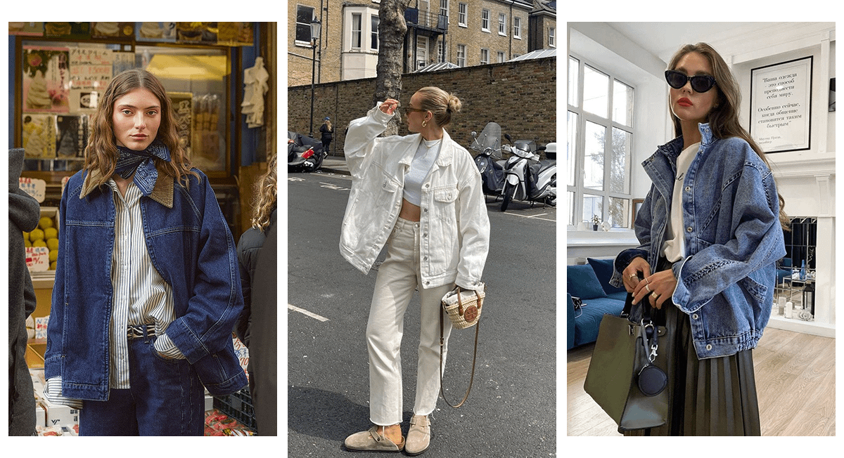 В моде как базовые голубые куртки, так и яркие — розовые, светло-зеленые, белые. Если любишь создавать образы в романтичном стиле, обрати внимание на модели с вышитыми сердечками или полевыми цветами. Также актуальны куртки из денима с кожаными и вельветовыми воротниками.